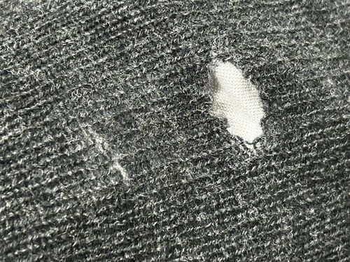 iPhone 14 着ているカーディガンの袖に穴が開いてしまった。開いてしまったというか、開けてしまったというか。 長袖を着ているのに、袖捲りする癖があって(作業したり食事したり、なんか手元でゴソゴソする時についつい…)、ちょうど掴んでしまうところの…