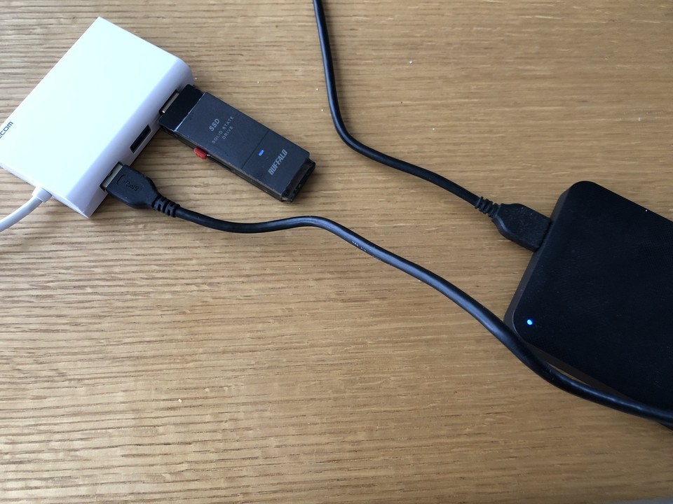 USBポートが足りないのでハブ兼有線LANアダプターに繋いでコピー。