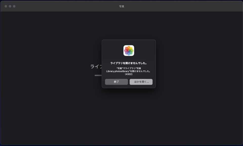 そこから、[option]を押しながら写真アプリを起動して、ライブラリーを指定する画面を開き、そこで「新規作成」を選択。場所指定して作成すればこれで準備完了。