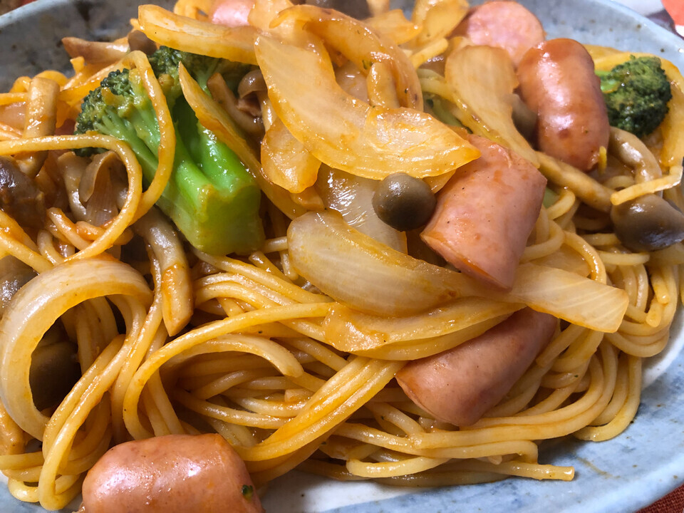 今日は材料があったのでナポリタンにした。そのままケチャップを入れるのではなく、ポークチャップに使うレシピでやってみた。こないだポークチャップを作ったときに使ったら案外美味しくて他の料理にも応用できるんじゃないかと。