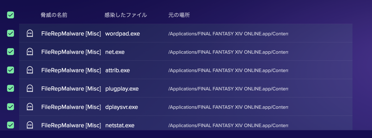 …もしかしたらほんとに感染してんのかな。だんだん不安になってきたのでここでファイルを見て行ったんだけど、引っかかるのとそうでないのがあって。どうなってんだろ。