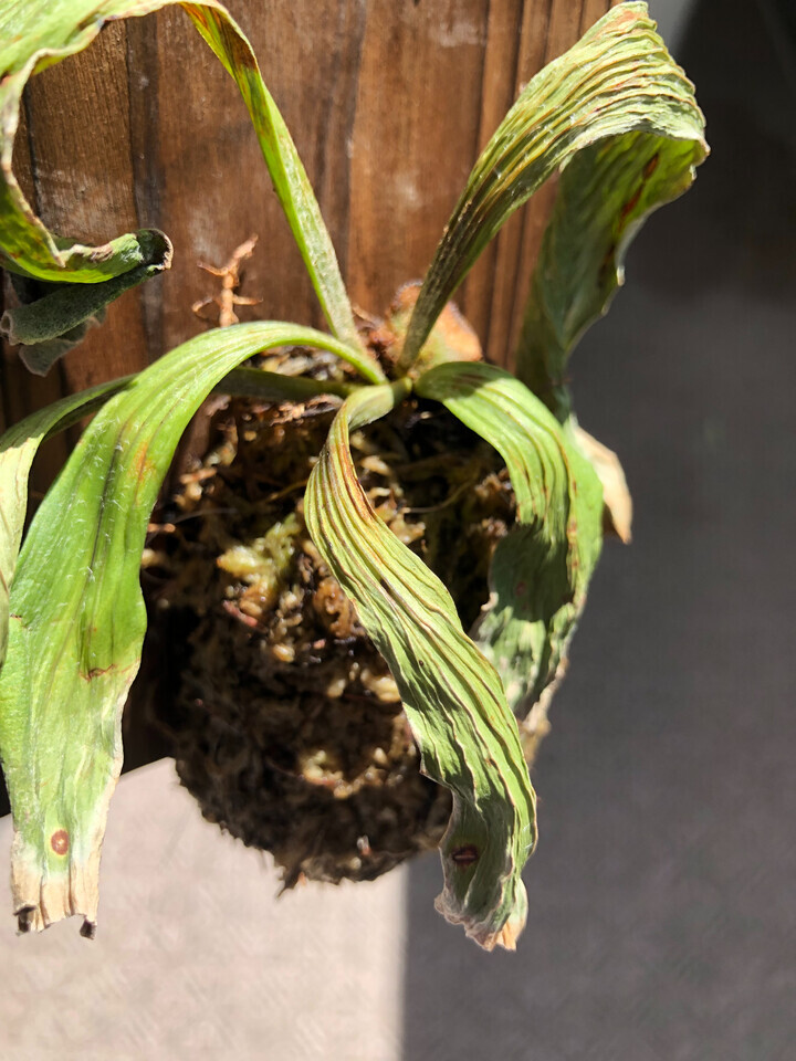 板付されているから良い感じになるかと期待していたのだが、葉が大きくなる気配も無いし、かといって枯れたのであれば全体的に緑が失われてもおかしくないのにまだ緑のところあるし、で、きんに君じゃないけど「どっちなんだい!?」と聞いてみたくなる。植物に口があったらどんなこと言われるだろうか…たぶん怒られるな。何となくだけど。