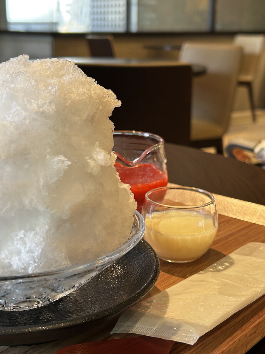 かき氷があってふたり迷わずこれを選んだ。最近はやりの「フワフワ系」かき氷ですごく食べやすかった。これ食べてなかったら今頃どうなっていたか。